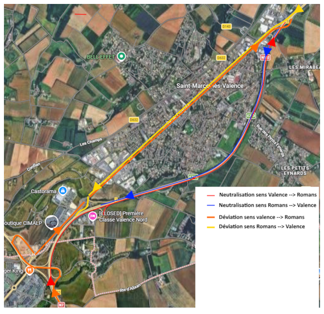 Du 30 mars au 2 avril : fermeture RN 532 entre l’échangeur de Saint-Marcel-lès-Valence Sud n°3 et l’échangeur des Couleures n°4 de 20h à 6h