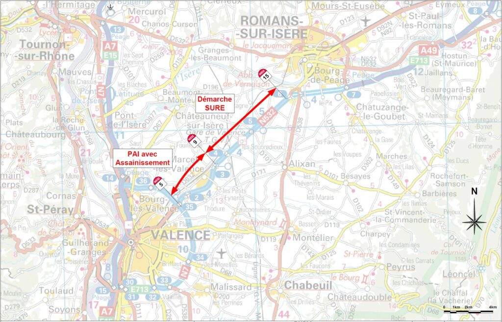 Une déviation est mise en place pour permettre aux usagers de prendre la RN532 (sens Grenoble  Valence) via l’échangeur n°4 (Gare d’Alixan).