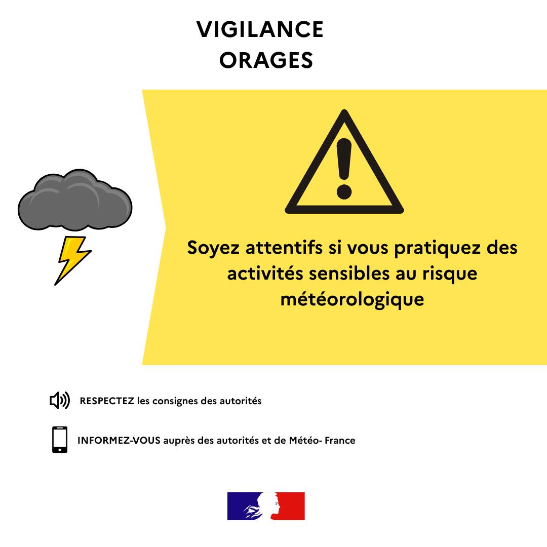VIGILANCE JAUNE VENT VIOLENT ET ORAGES : Lundi 2 février 2026 dès 16h.